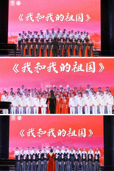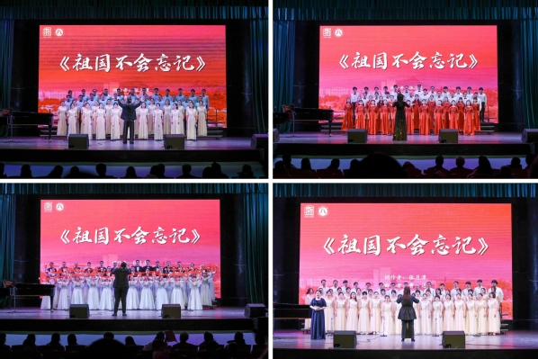 杭校区管委会、儿童教育学院与幼教集团携手演唱《天耀中华》,法学院、图文中心、马克思学院、设计学院四支队伍以不同的演绎呈现《祖国不会忘记》,化材学院、生命学院、计算机学院三支队伍引吭高唱《我和我的祖国》,行知学院与数学学院两支队伍带来《灯火里的中国》,表达了对浙师大教职工和国家建设者的敬意与颂扬。