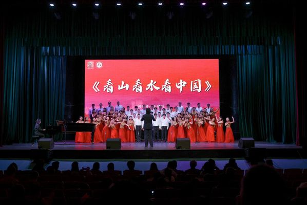 伴随外语学院《保卫黄河》的雄壮歌声,合唱比赛拉开帷幕。物电学院、终身学院两支队伍献上《长江之歌》,经管学院齐唱《看山看水看中国》,描绘祖国河山,赞颂盛世华章。