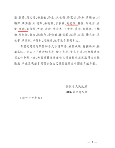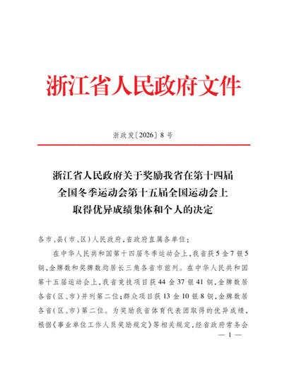 近日,浙江省政府印发《关于奖励我省在第十四届全国冬季运动会第十五届全国运动会上取得优异成绩集体和个人的决定》,对在两大全国性体育赛事中斩获佳绩的集体和个人予以表彰。浙师大体育学院2025届毕业生华梓惠、2025级本科生傅晓璐凭借赛场出色表现荣获记功奖励,院友刘功聚、晋勋因在科研医务保障工作中的突出贡献获嘉奖表彰。